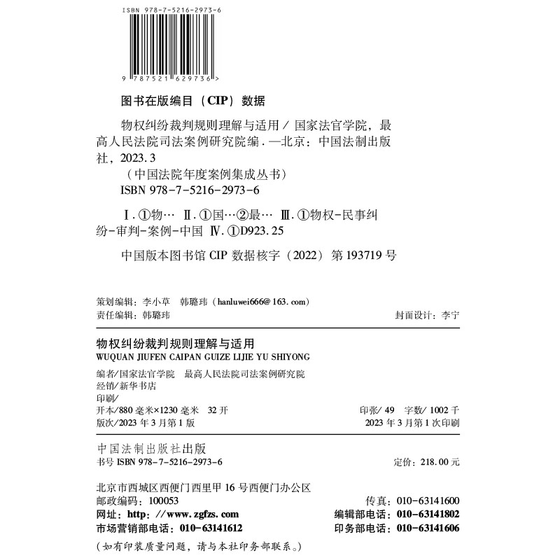物权纠纷裁判规则理解与适用 司法实务参考用书 中国法院年度案例集成丛书 类型化裁判规则 小全书 疑难新型典型案例 现货2023新书