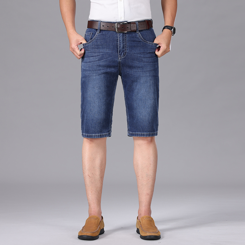 薄款 夏季 直筒宽松中裤 5分裤 高端男士 男中年弹力百搭马裤 牛仔短裤