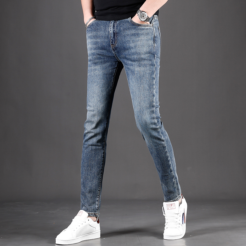 小脚春夏季 修身 新款 水洗弹力百搭休闲男装 子 高端蓝色牛仔裤 裤 男款