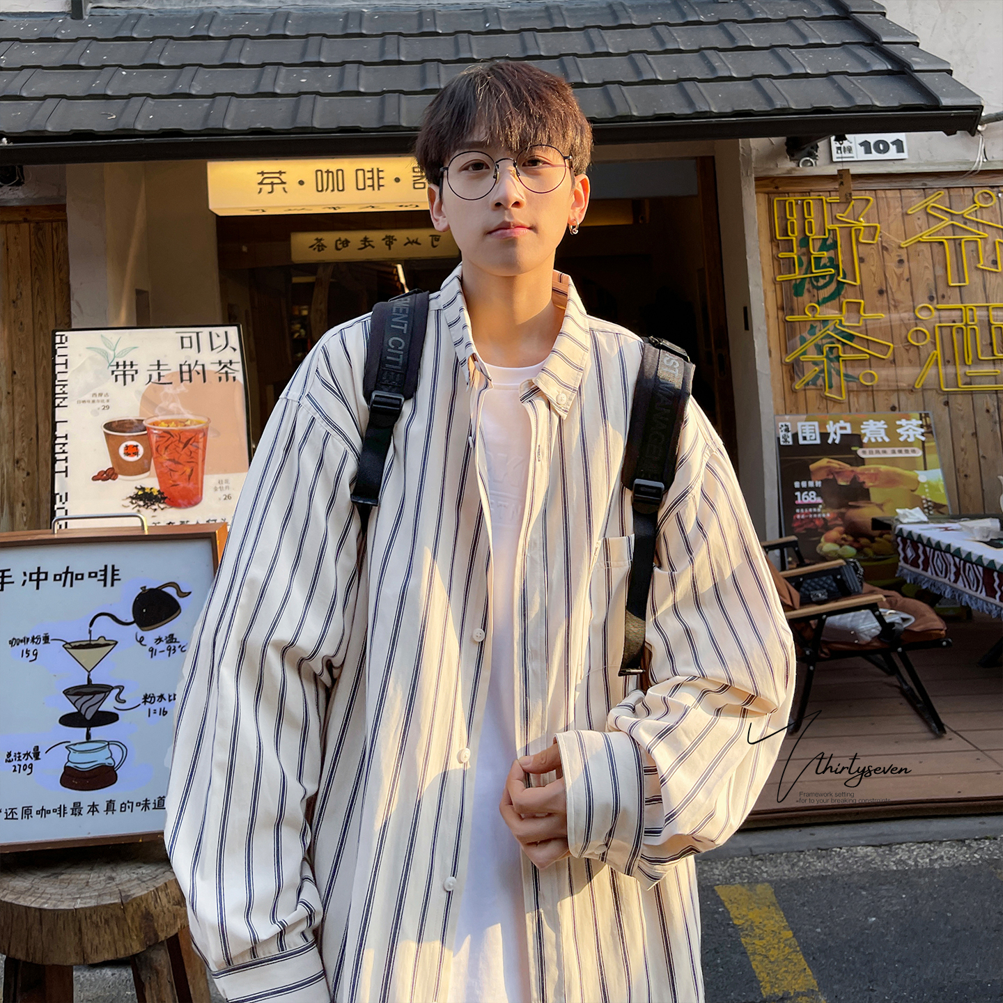 商品标签:条纹衬衫男秋季