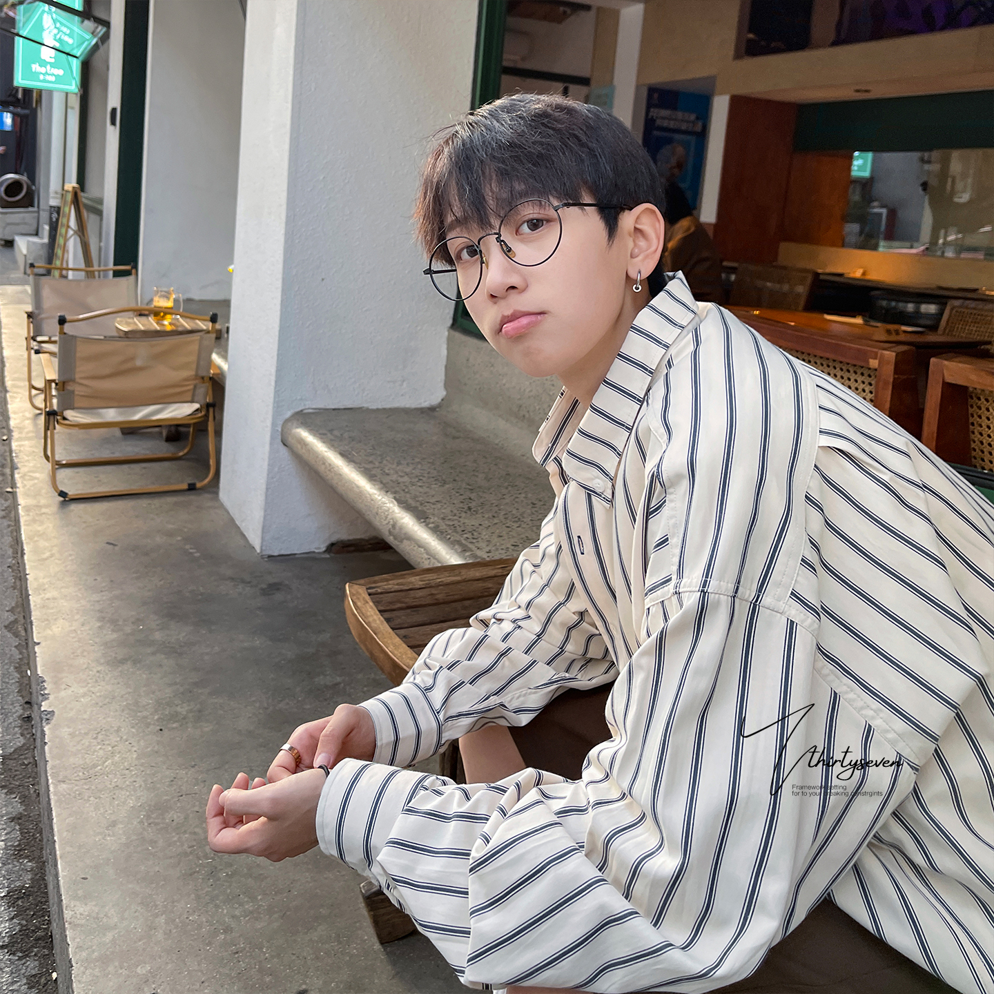 百搭休闲翻领衬衣外套 男秋季 日系潮牌vintage少年感长袖 条纹衬衫