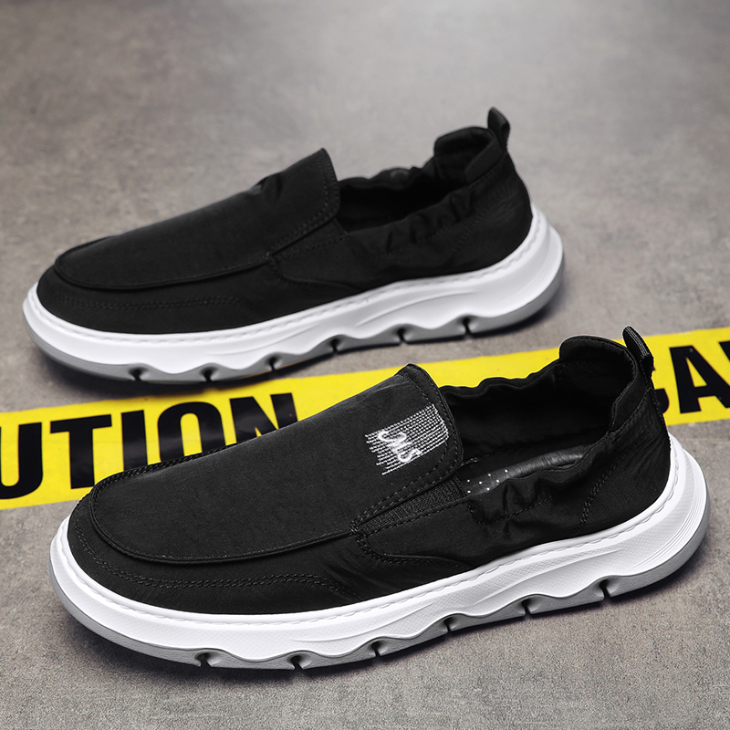 爸爸潮鞋 秋季 一脚蹬冰丝工作防滑板鞋 休闲黑色老北京布鞋 帆布男鞋