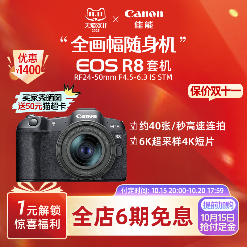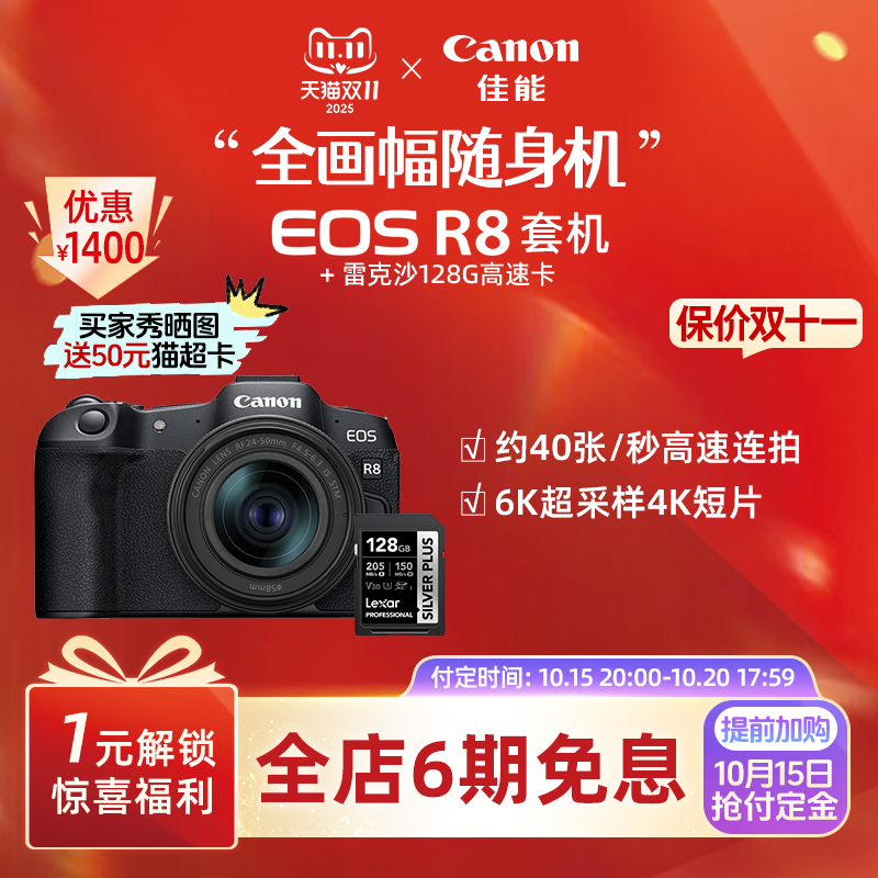 旗舰店 套机 Canon R8机身 全画幅专业微单高速连拍相机 佳能EOS