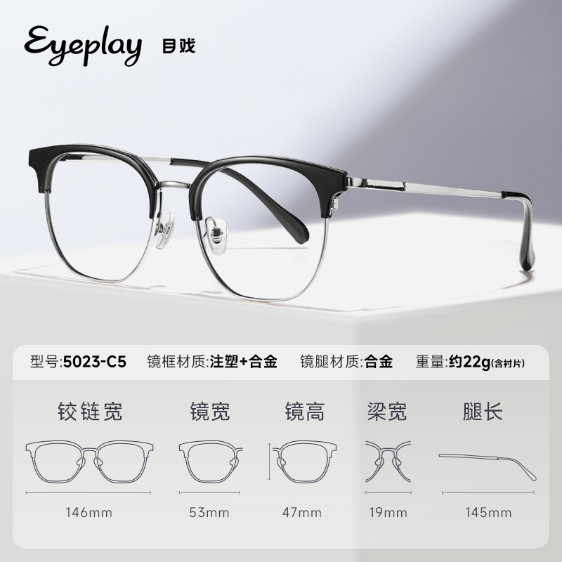大框超轻TR90近视架框男女同款 圆形复古潮眼镜定制成品光学镜纯钛
