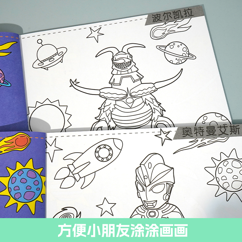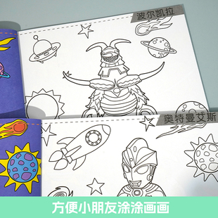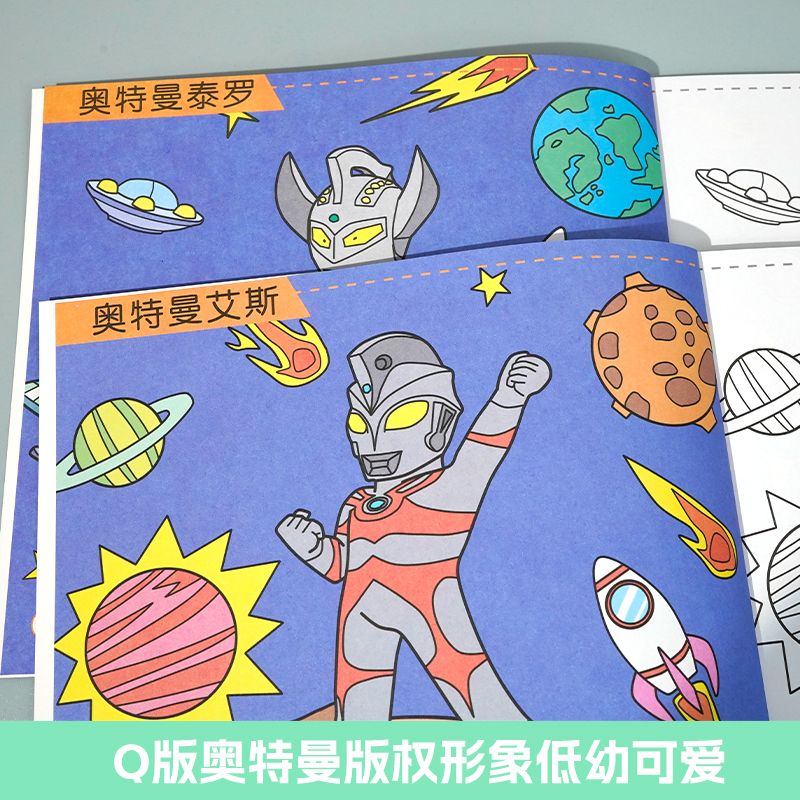 Q版 6岁宝宝绘画启蒙教材美术书幼儿园男孩涂鸦填色图画早教益智绘画书籍少儿艺术入门绘画本 奥特曼萌趣涂色书儿童画画绘本2