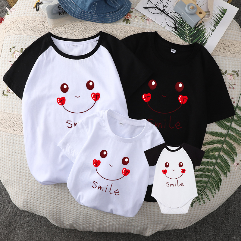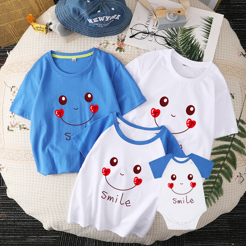 新生儿包屁衣全家装 笑脸T恤纯棉男女宝宝短袖 夏天 亲子装 不一样