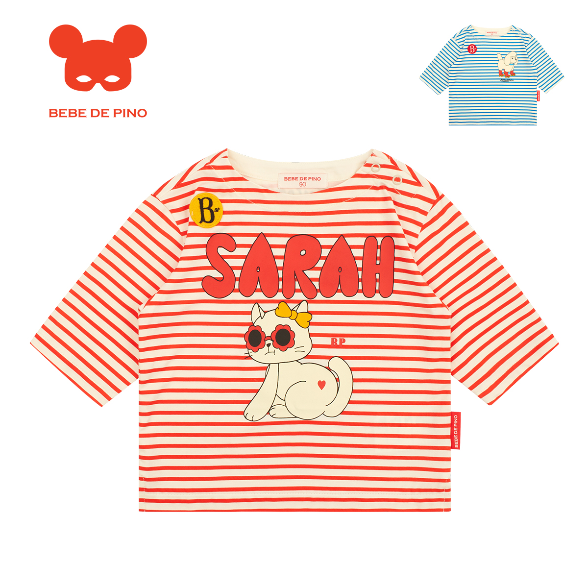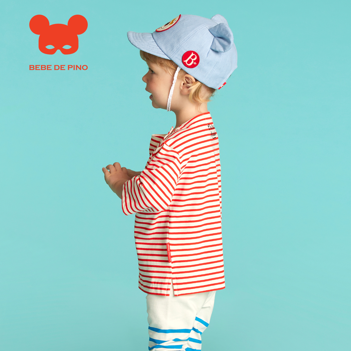 BEBEDEPINO贝贝品诺百搭运动休闲条纹卡通印花T恤新款 潮酷短袖
