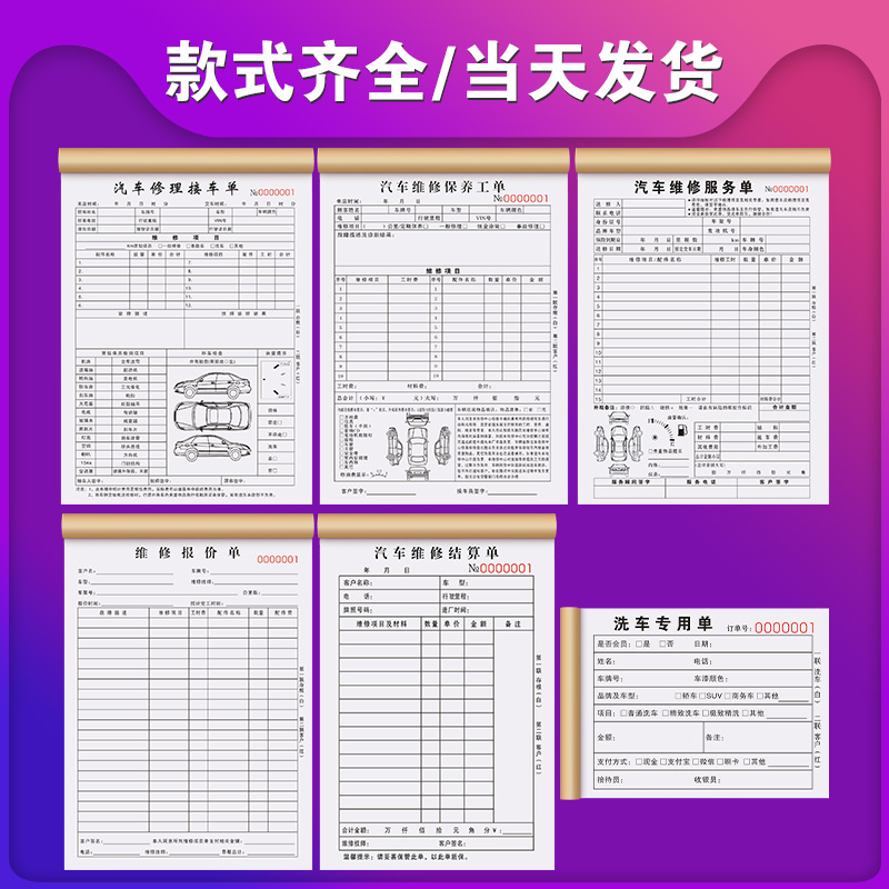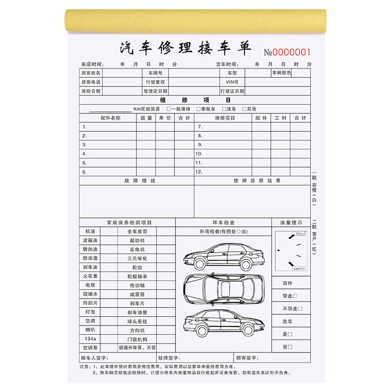 接车单定制4s店结算清单汽修厂单据洗车店油漆贴膜工作施工接待单修车工时费记工明细表修理厂汽车维修保养单