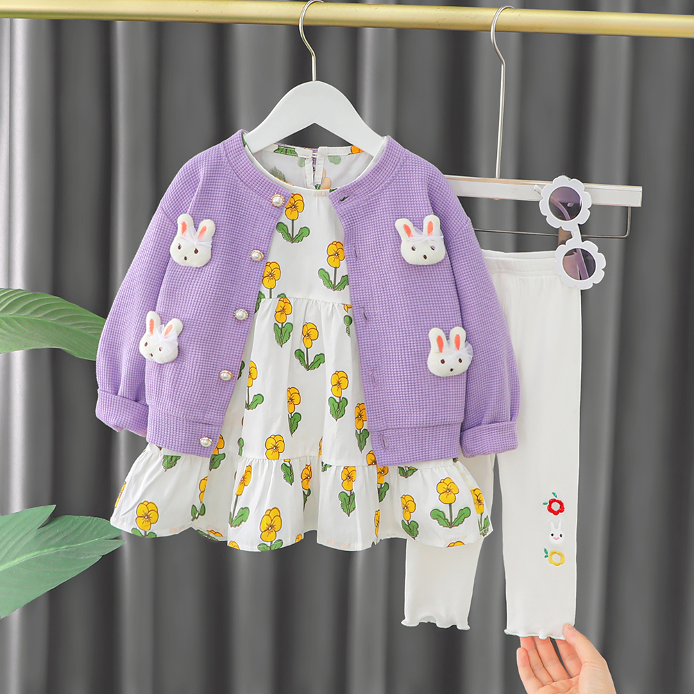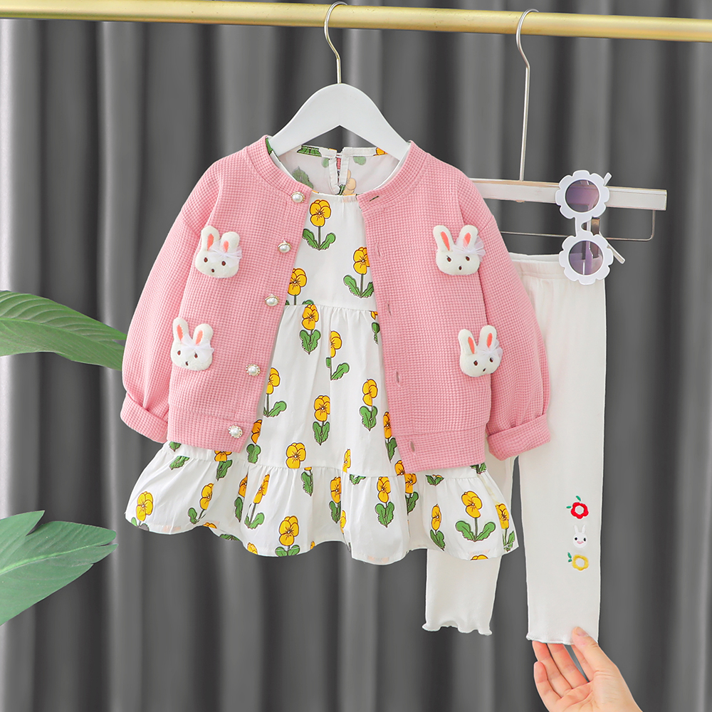 3岁半儿童女孩连衣裙套装 1一2 秋洋气三件套夏 新款 女宝宝2023春装