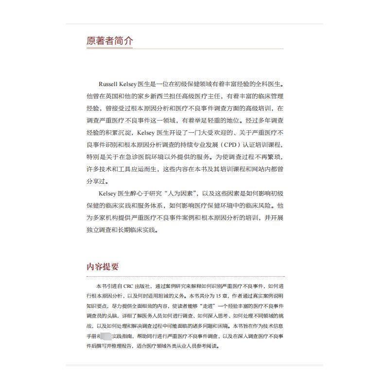 reporting and seriors clinical 医药卫生书籍 患者:有关严重不良事件 incidents 调查与报告:investigating