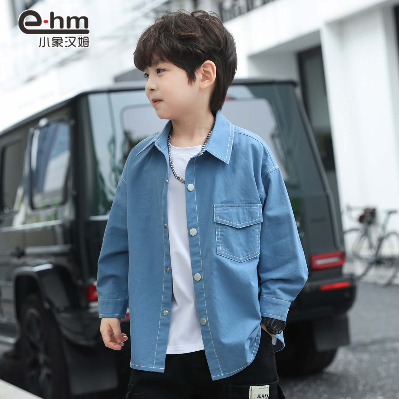 加绒加厚百搭高级感痞帅初中生 外套男春秋新款 青少年牛仔长袖 衬衫