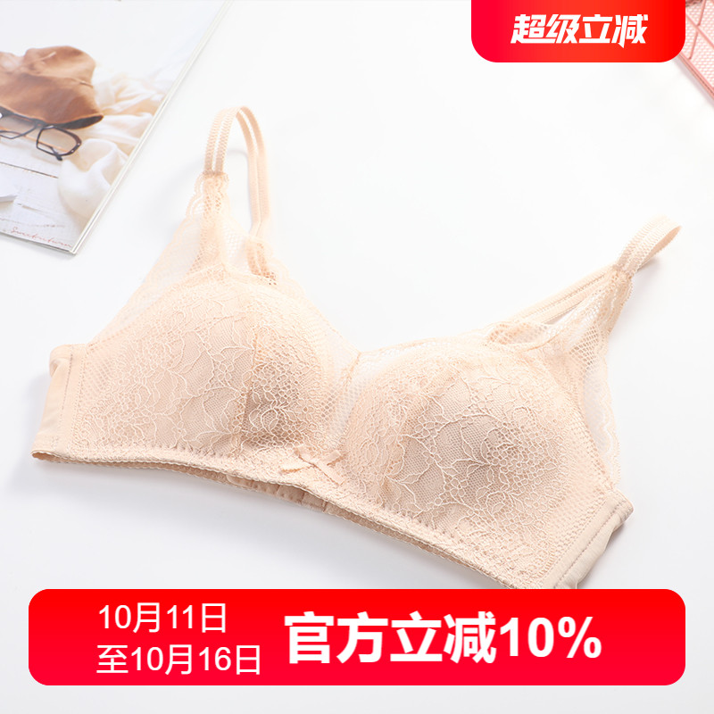 无钢圈内衣女 安莉芳官方奥莱安朵清新蕾丝性感文胸薄款 轻柔杯