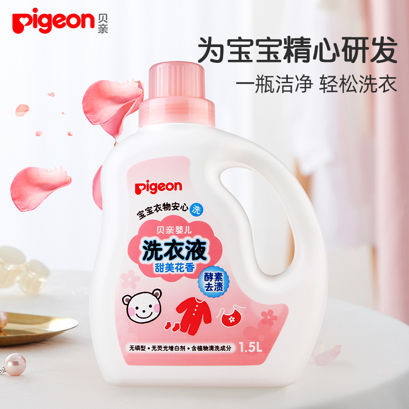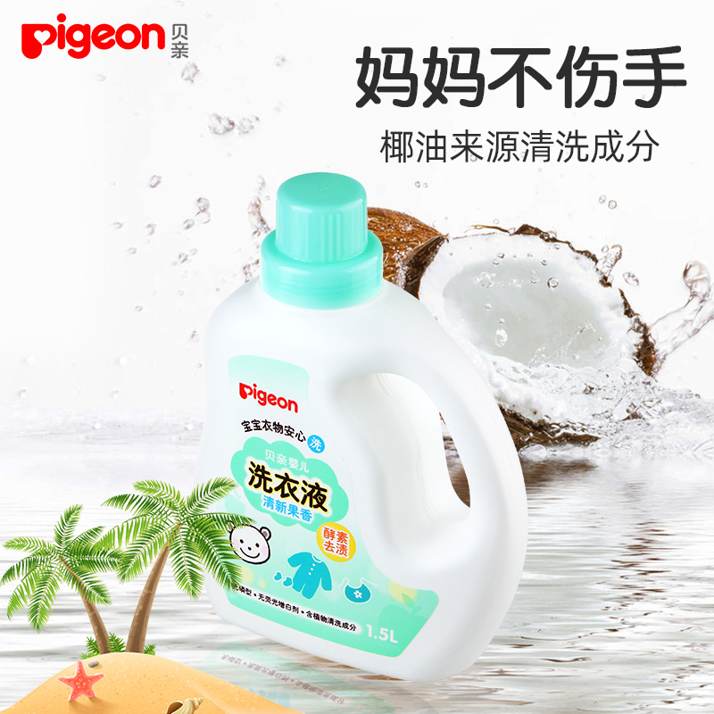 贝亲婴儿酵素洗衣液新生植护宝宝专用婴幼儿清洗剂花香果香型1.5L