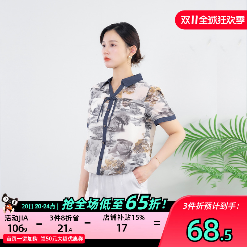 上衣2025秋季 女棉质撞色翻领单排扣长袖 Eland衣恋衬衫 新 预售