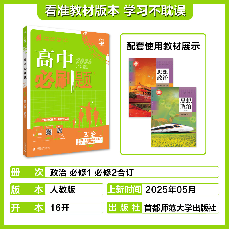理想树2026新版 高一上新教材高中教材同步练习教辅资料高一上必刷题狂K重点答案册 高中必刷题政治必修1必修2合订RJ人教版