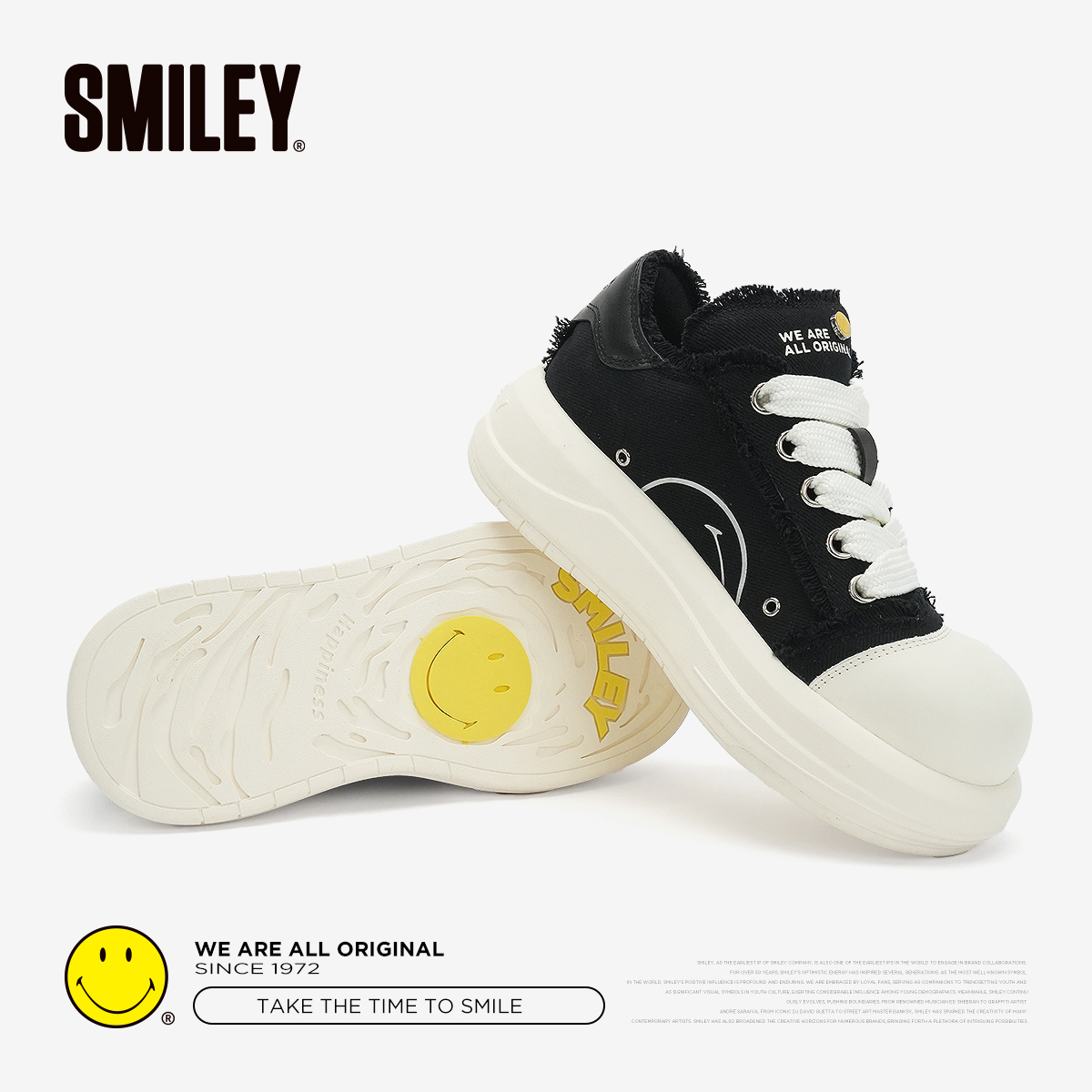 男女厚底帆布情侣休闲女鞋 SMILEY笑脸白鲸黑大头鞋 张桂源同款