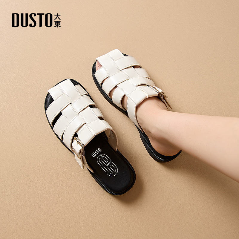 勃肯鞋 DYOWOZ 情侣款 平底休闲外穿半包头拖鞋 东园物作真皮软木鞋