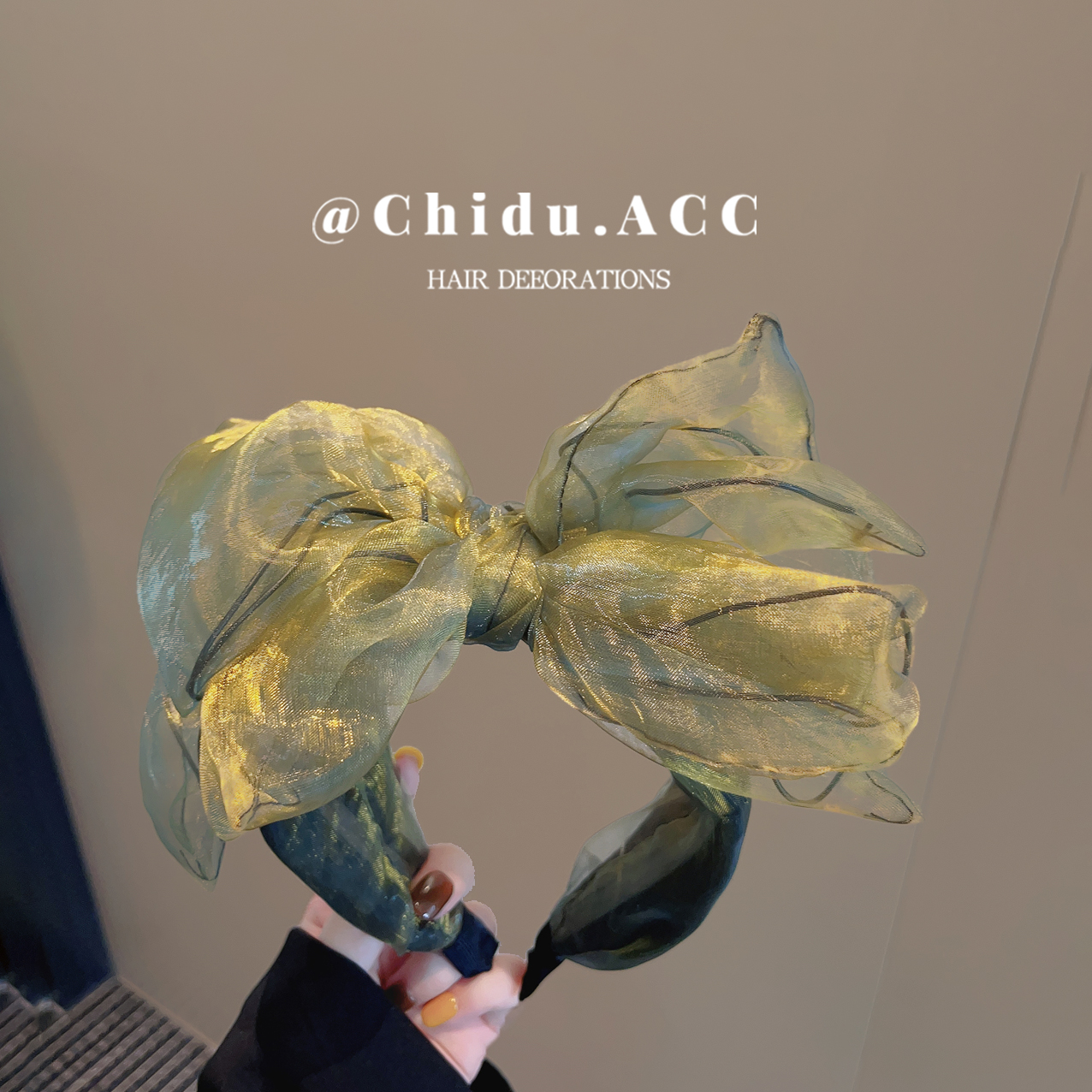 韩国发饰豹纹蝴蝶结发箍女高级感洋气时尚 显脸小增高颅顶头箍发捆