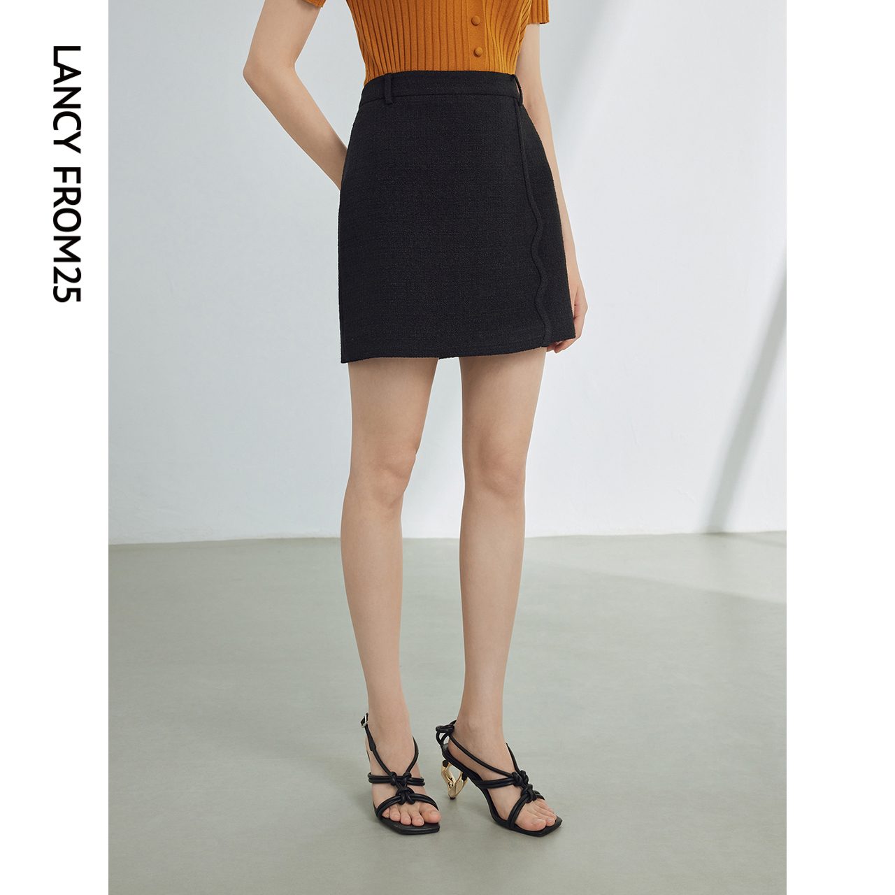 小香风复古a字高腰显瘦裙子女2024年夏季 朗姿法式 新款 朗姿奥莱