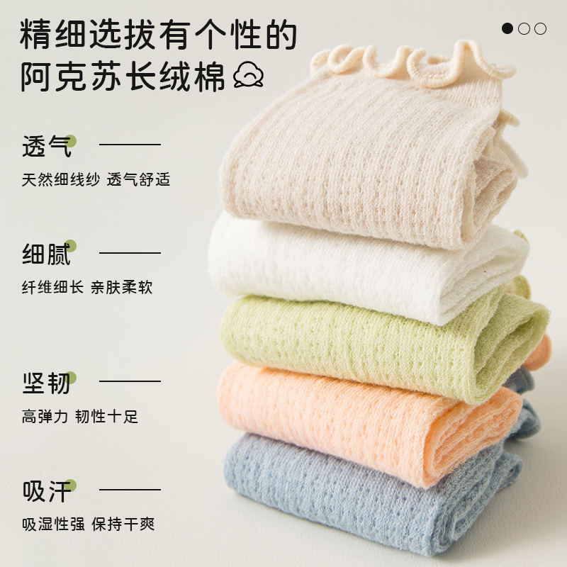 女童袜子夏季 纯棉中筒网眼袜夏天儿童女孩公主花边长筒堆堆袜 薄款