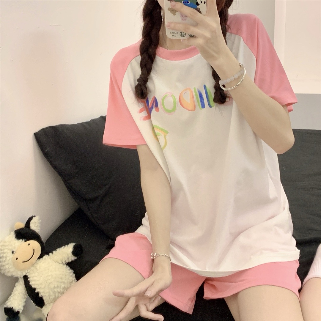 春秋款 睡衣女夏天纯棉凉感短袖 甜美卡通夏季 套装 少女家居服薄 短裤
