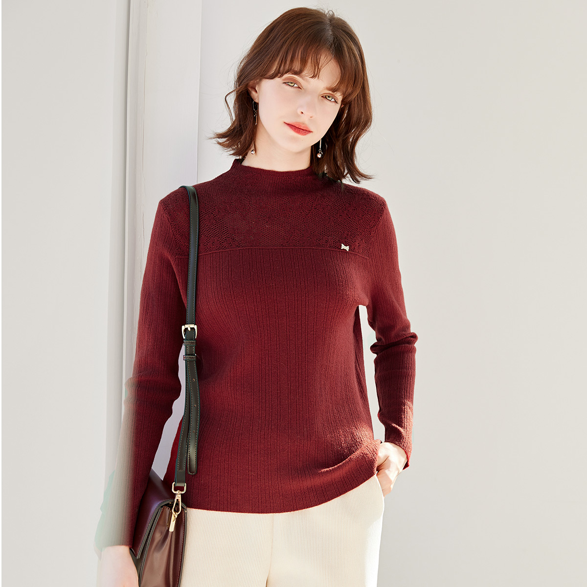 配羊毛大衣内搭羊毛针织衫 拉夏贝尔黑色高领打底衫 毛衣女秋冬新款