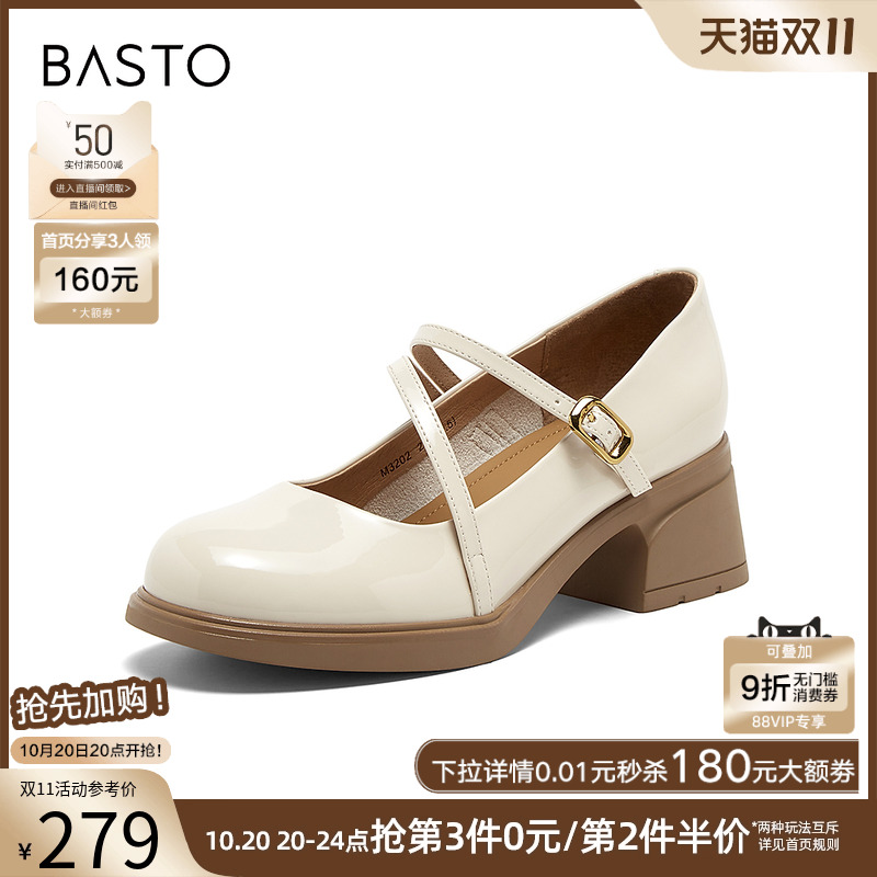 浅口女单鞋 高跟鞋 W0753CQ5 珍珠钻带玛丽珍鞋 百思图2025秋商场新款