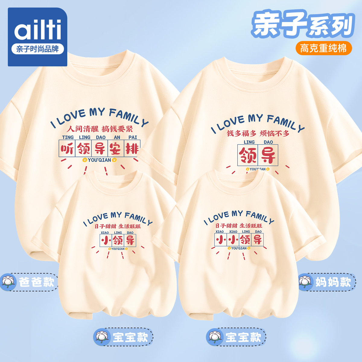 t恤2025超火中小童趣味夏装 一家三口四口纯棉洋气短袖 夏装 亲子装