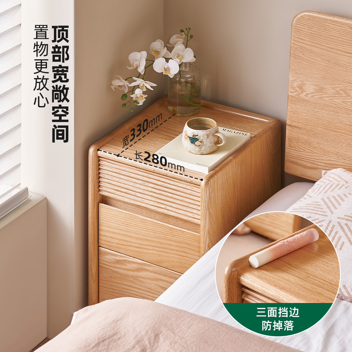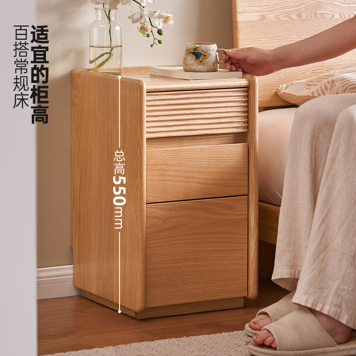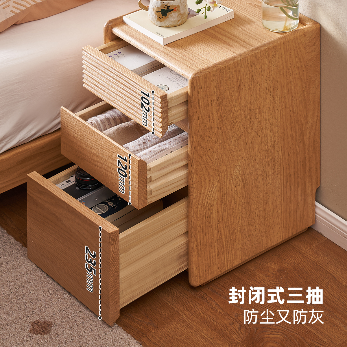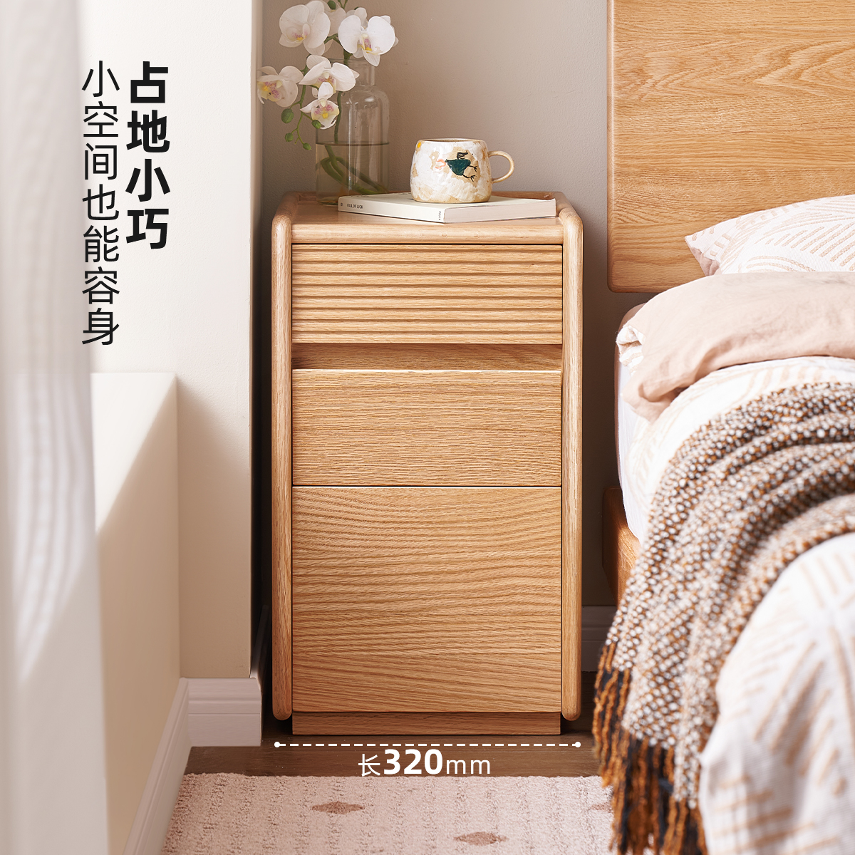 原始原素实木床头柜现代简约橡木原木风小型极窄床边收纳柜L7027