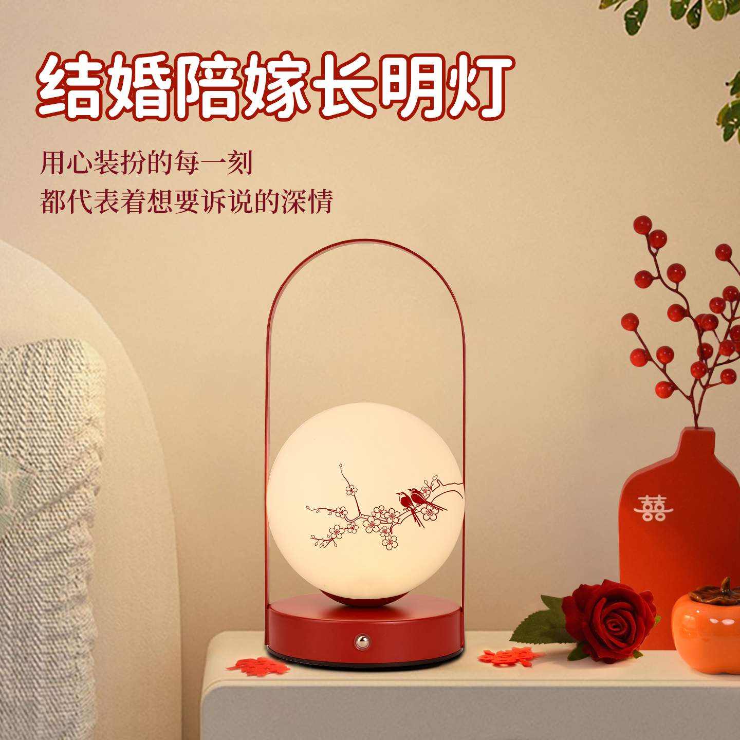 女方陪嫁长明灯一对家用高级感喜灯结婚送新人新娘礼物婚房床头灯