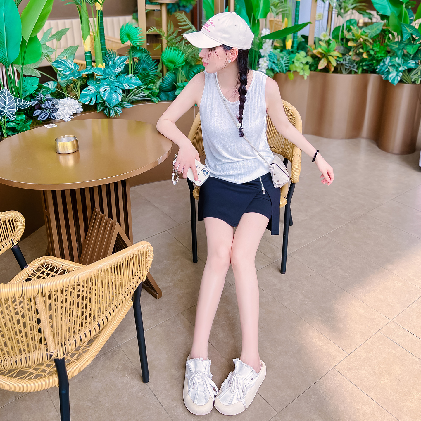 507358 下摆蕾丝拼接抽绳松紧腰半身裙女装 三福长裙2025秋季