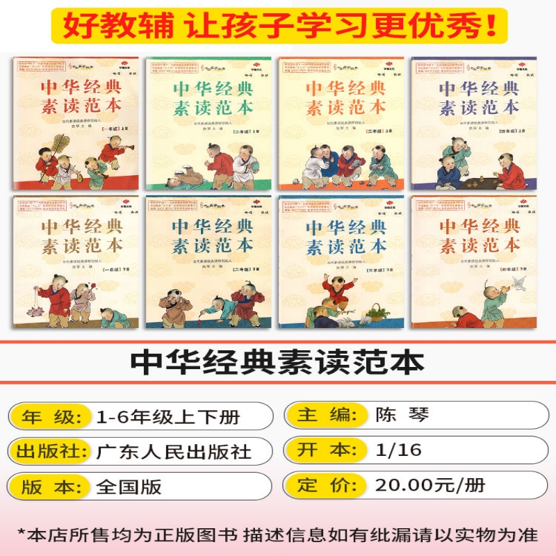 陈琴曾广贤中华素读教程诵读背诵文言文古诗文课外书籍 同步教材 小学生中华经典 素读范本一二三四五六年级上册下册全12本国学经典