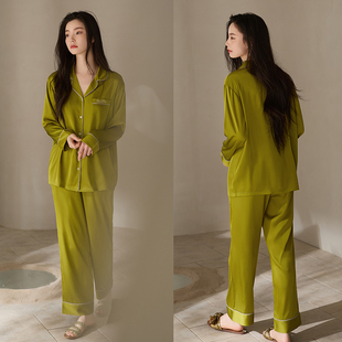 家居服套装 轩靓高级感睡衣女春秋季 夏天仿真丝绸大码 长袖 冰丝薄款