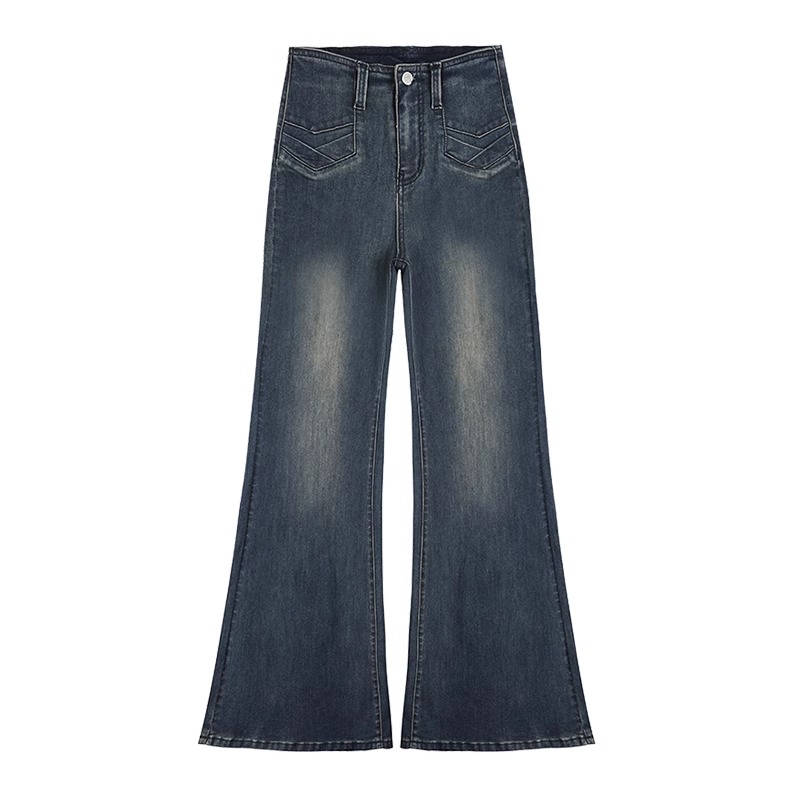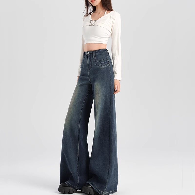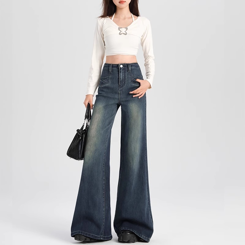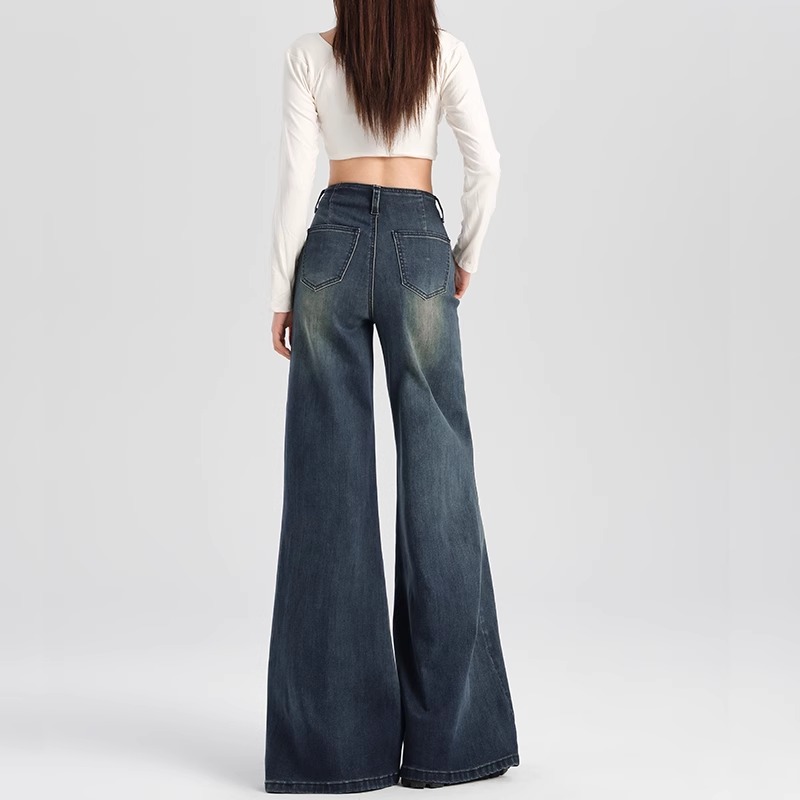 辣妹风设计感高腰显瘦不贴腿喇叭裤 复古微喇牛仔裤 女宽松春秋新款