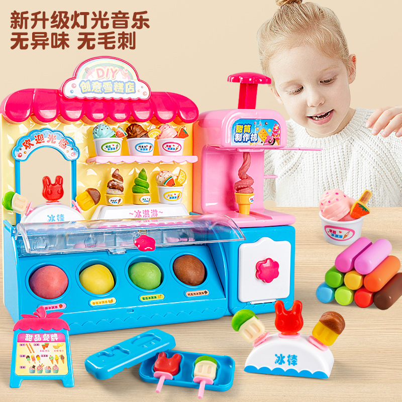儿童冰淇淋雪糕车粘土女孩玩具橡皮彩泥冰激凌店手工制作黏土diy