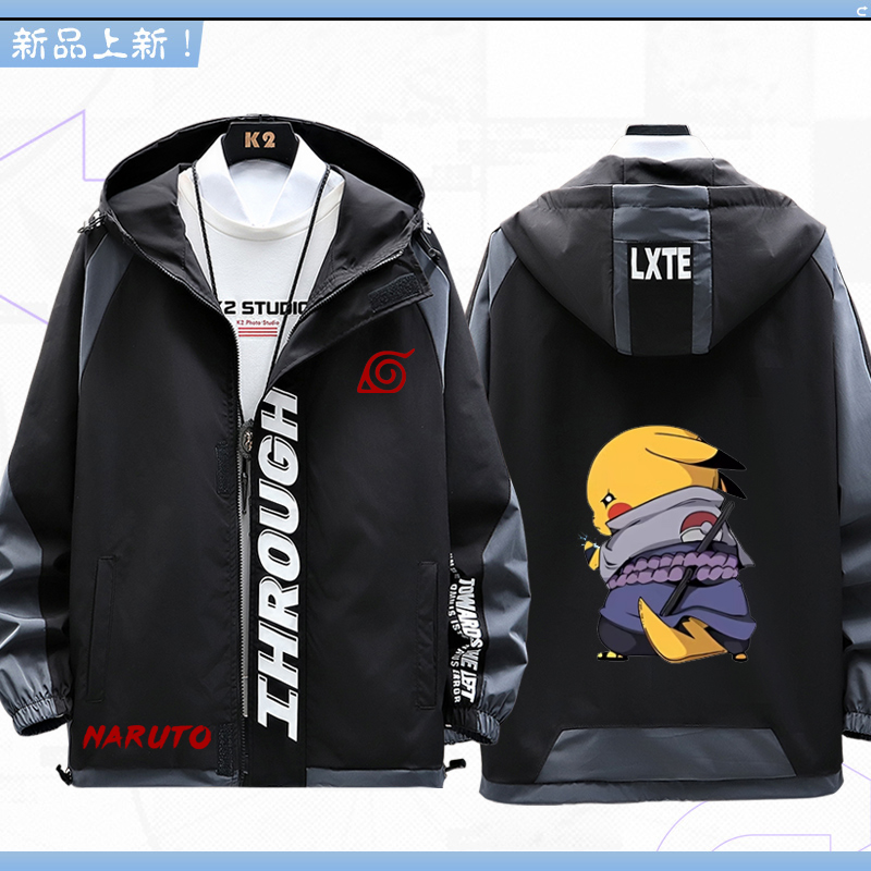 火影忍者联名周边皮卡丘晓组织宇智波鼬佐助鸣人夹克外套衣服LN