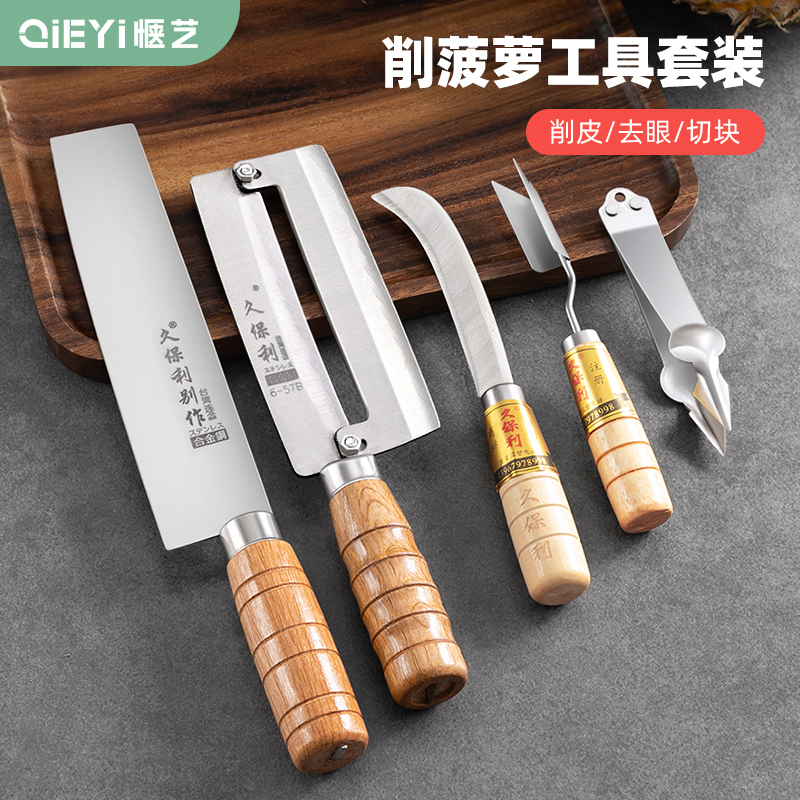水果店削菠萝专用刀不锈钢菠萝刀凤梨削皮神器挖眼夹菠萝工具套装