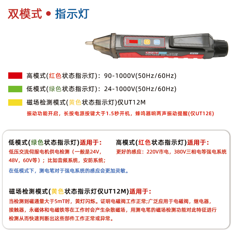 优利德UT12E 非接触智能感应测电笔零火线识别线路检测试电笔 12M