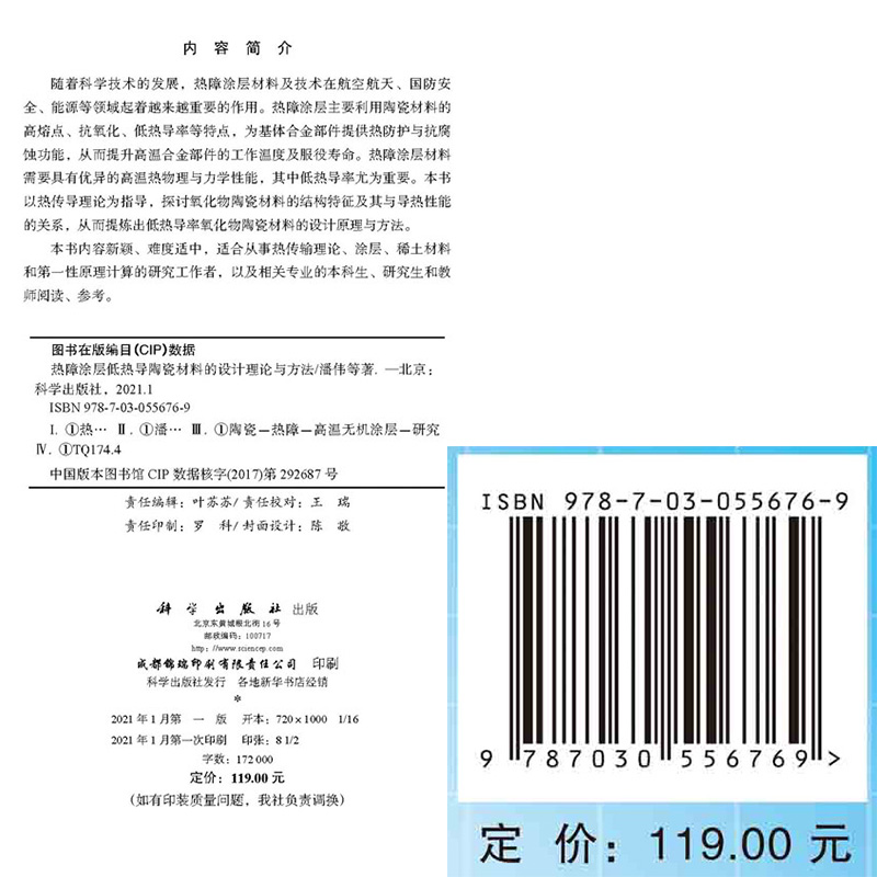 热障涂层低热导陶瓷材料 社潘伟等9787030556769 设计理论与方法科学出版