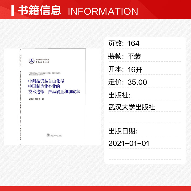 苗双有 产品质量和加成率 万家乐 著 励志 中间品贸易自由化与中国制造业企业 世界及各国经济概况经管 技术选择
