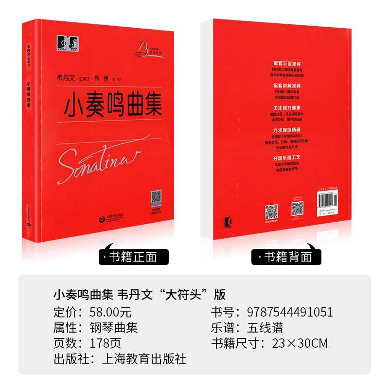 小奏鸣曲集 儿童钢琴练习曲谱上海教育出版 扫码 韦丹文大音符班 钢琴初学者入门保护视力钢琴曲乐谱人民音乐红皮教材书 看视频 正版
