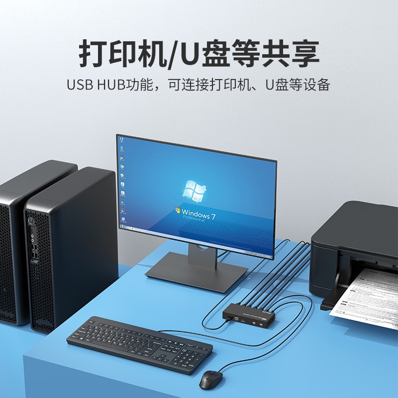 绿联kvm切换器hdmi二进 四进一出一套键盘鼠标控制两台电脑2双主机共用一个显示器带多usb共享同步分配切屏器