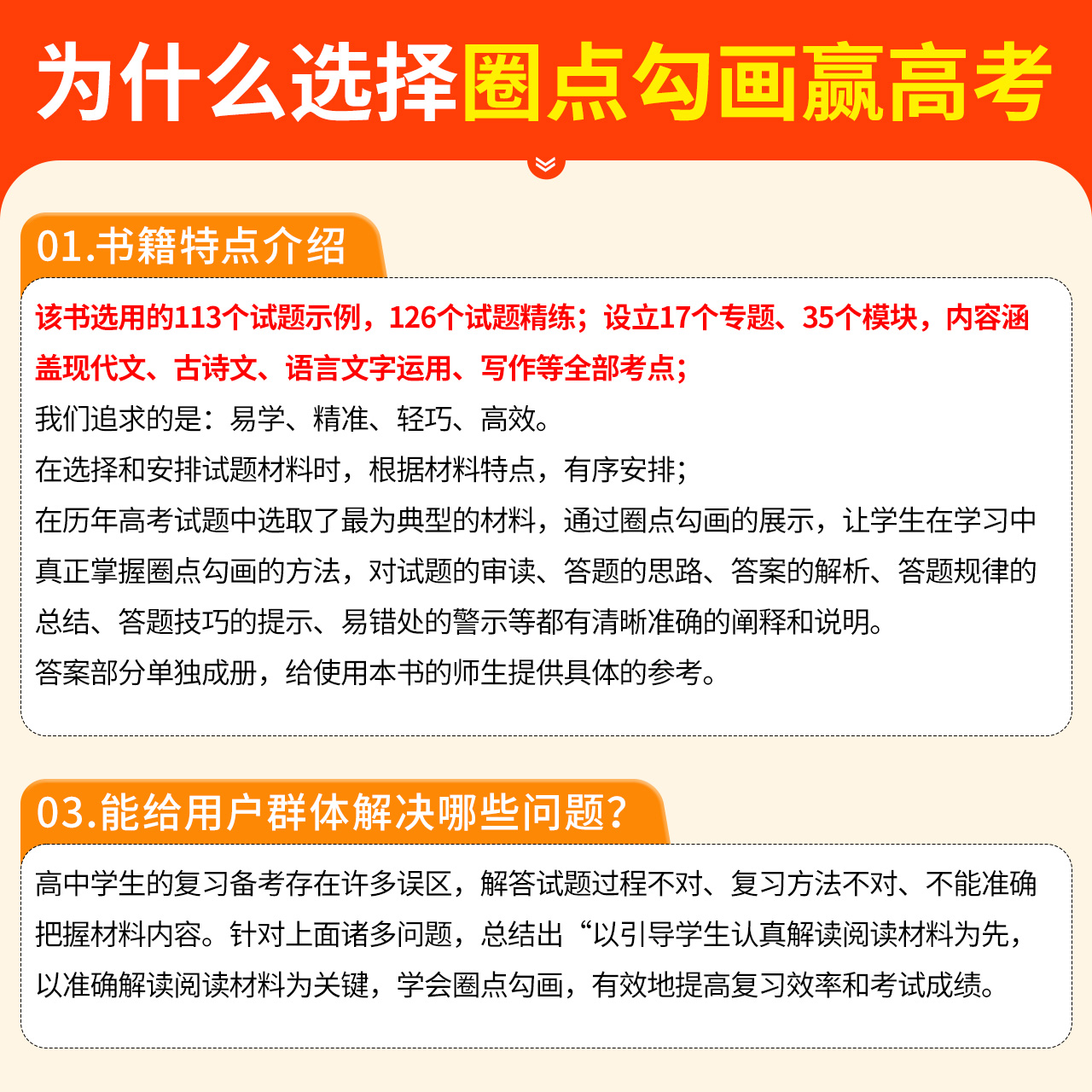 圈点勾画赢高考语文高效复习新思路语文阅读必刷题阅读练习与阅读修辞手法运用现代文古诗文阅读高中语文巅峰训练历年真题全刷2000