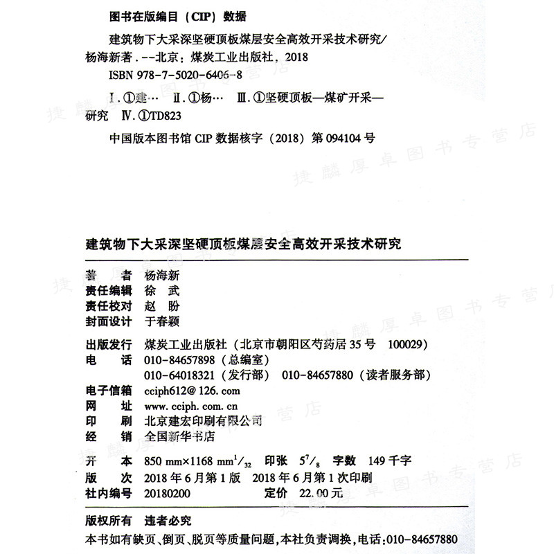 9787502064068 社 建筑物下大采深坚硬顶板煤层安全高效开采技术研究 煤炭工业出版