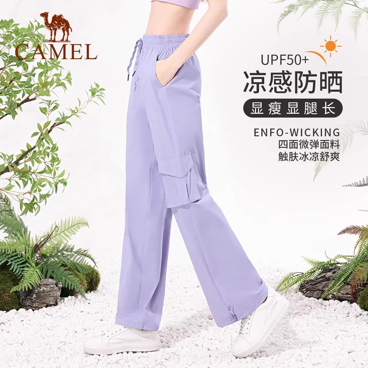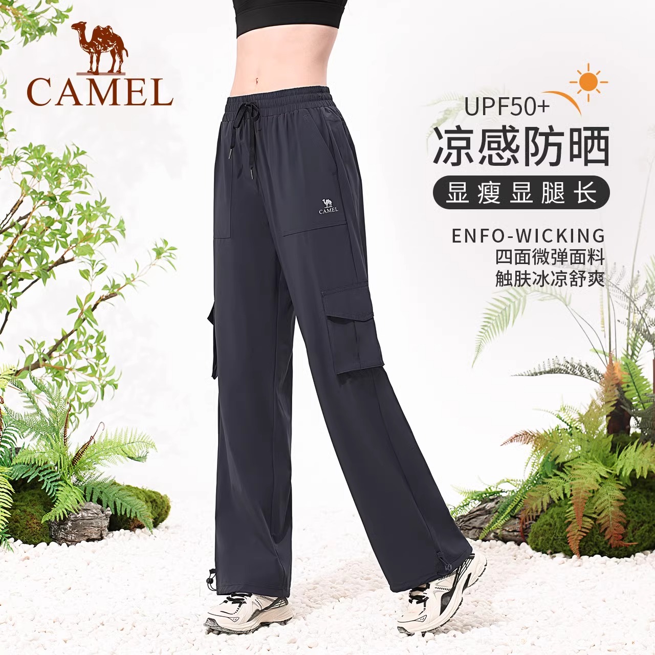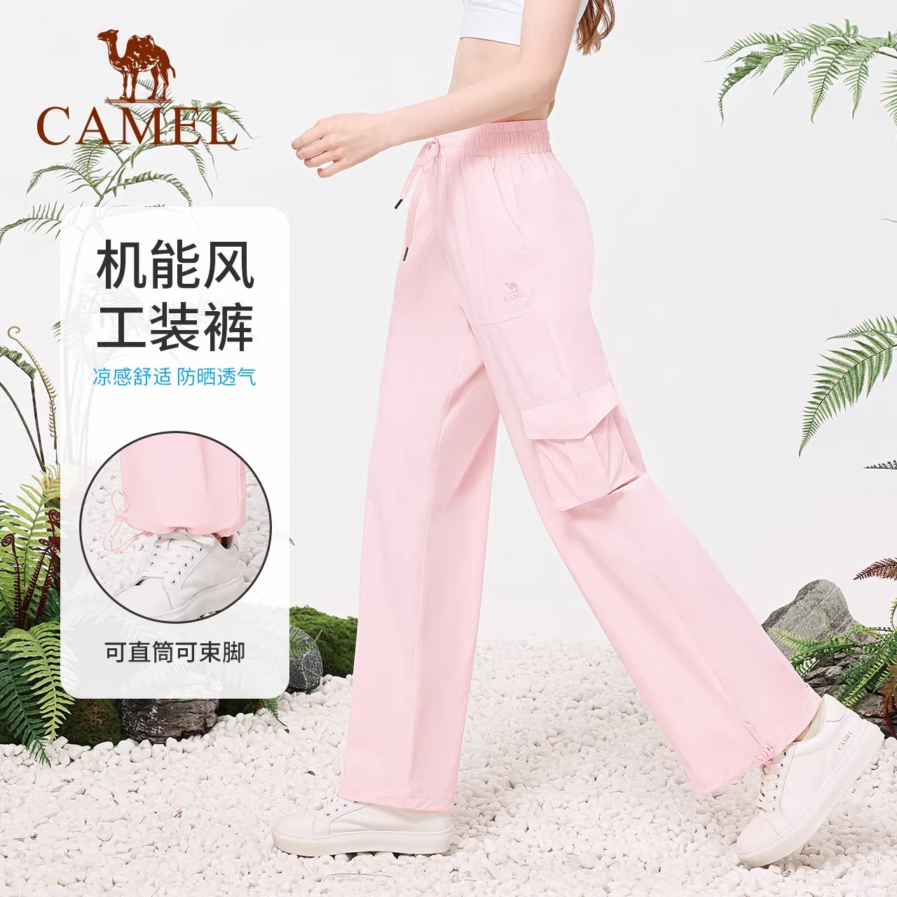 高腰2025秋季 裤 新款 宽松直筒裤 女 骆驼女装 透气防晒休闲裤 伞兵工装