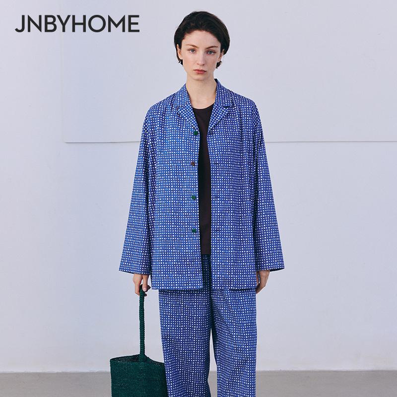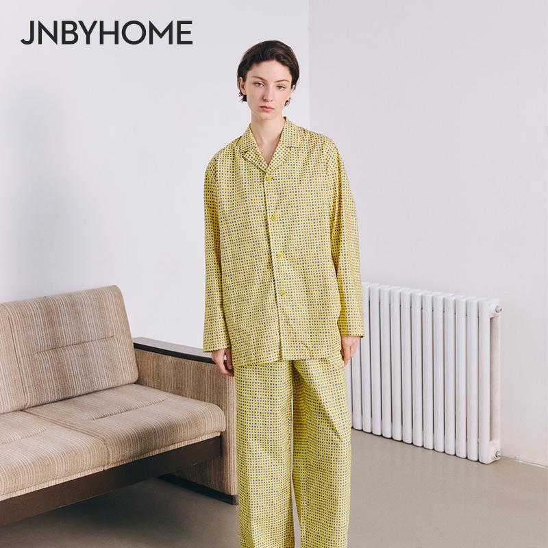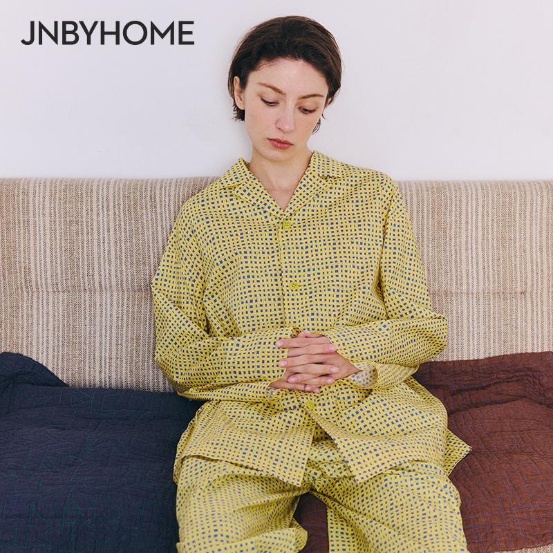 女 睡衣情侣格纹长袖 JNBYHOME江南布衣25春全棉翻领衬衫 家居服套装