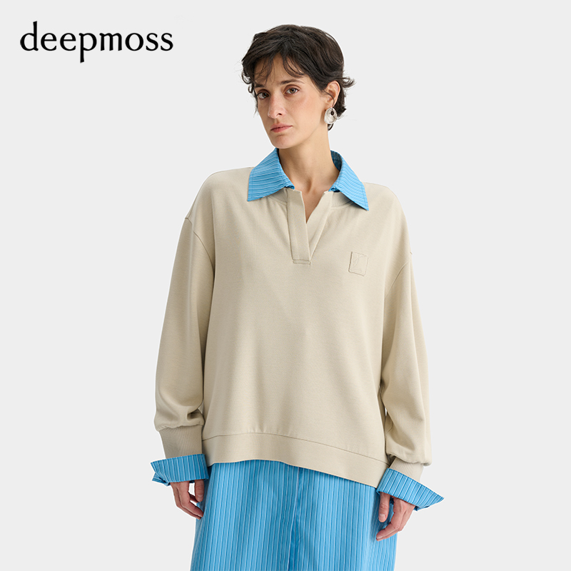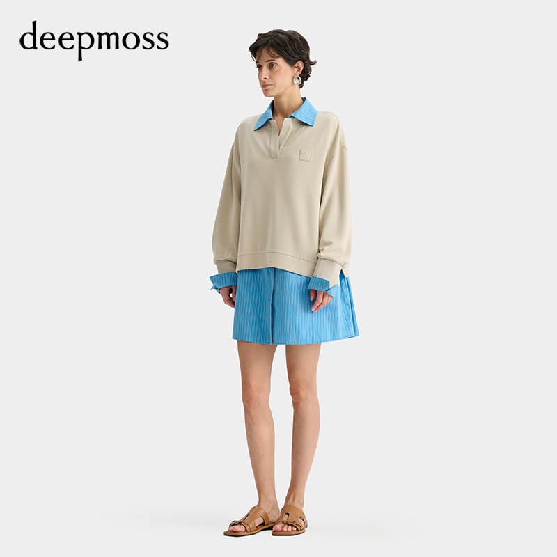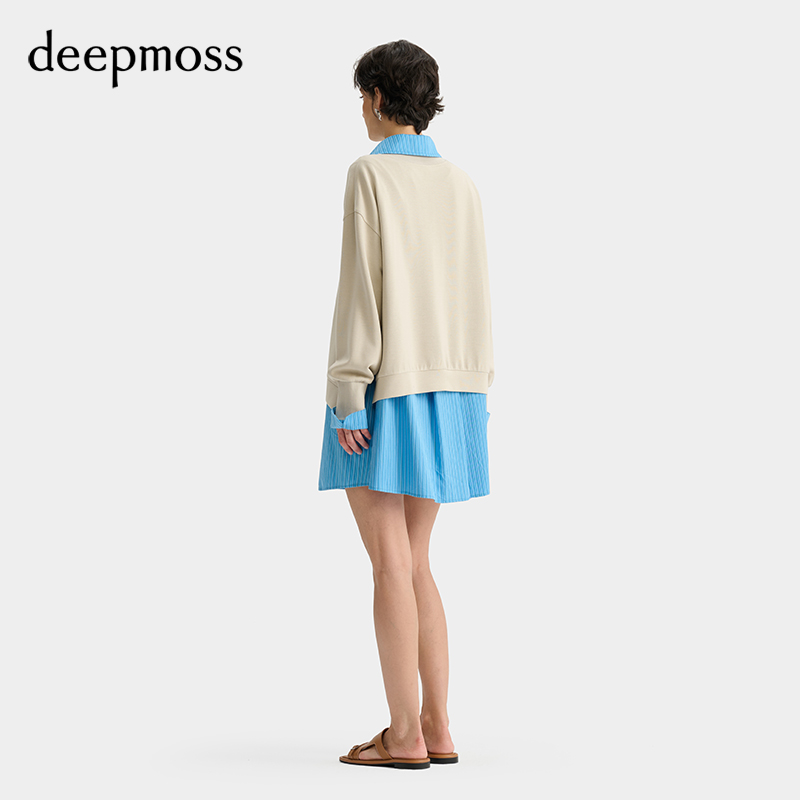 deepmoss 气质衬衫 2025新款 时尚 条纹拼接连衣裙 潮流女装