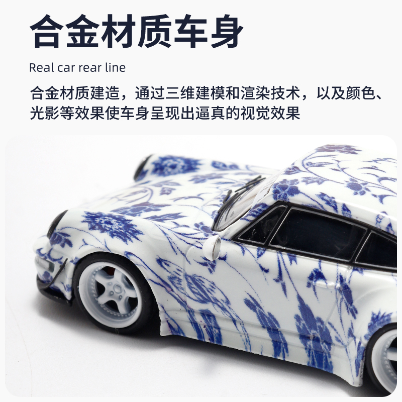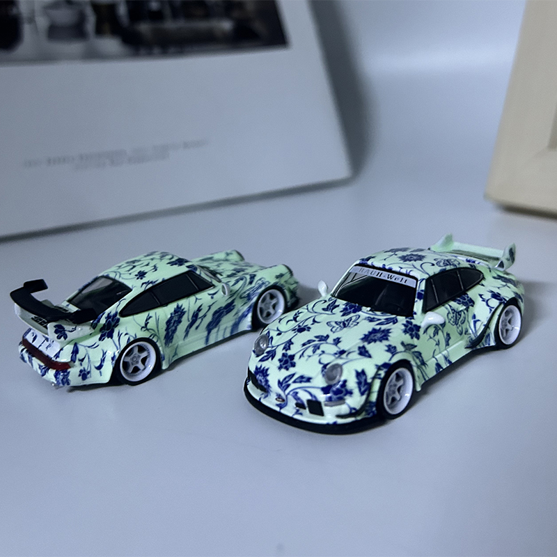 保时捷 RWB 993 限量仿真汽车模型 964 夜光版 Flame 青花瓷