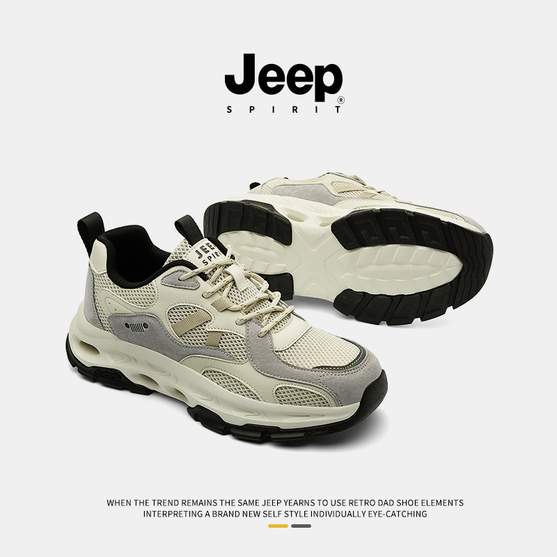 春季 男2025新款 男士 透气户外鞋 jeepspirit吉普男鞋 男款 网面休闲鞋