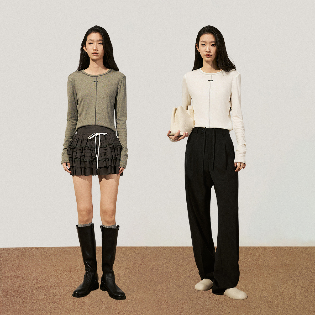 T恤上衣打底气质淡人穿搭2025秋冬新品 OCHIRLY欧时力 正肩长袖